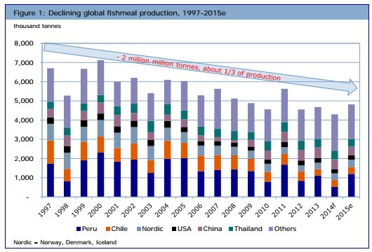 In 2014/15, fishmeal was in short supply due to the cancelation of last year's second Peruvian fishing season, linked to an El Nino weather phenomenon.